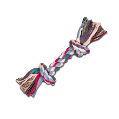 Kolorowy sznur bawełniany - wspaniała zabawka dla psa małej rasy i szczeniaka. Mały sznur doskonały jako prezent do wyprawki dla małych szczeniaczków. Zabawa sznurem wspomaga utrzymanie higieny zębów - dzięki włóknom pies czyści zęby i masuje dziąsła. Sznur posiada również węzły, co przysparza dodatkowej frajdy. Możesz również bawić się w przeciąganie i szarpanie ze swoim psiakiem.