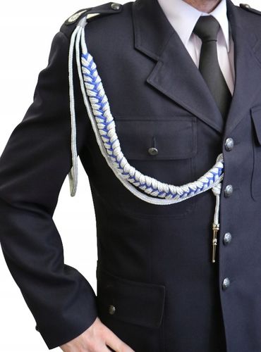Galowy sznur został starannie upleciony z trzech splecionych warkoczy, wyróżniających się srebrzystoniebieskim kolorem. Ten kunsztowny splot to dzieło prawdziwych mistrzów rzemiosła, których precyzja i dbałość o najdrobniejsze szczegóły gwarantują wyjątkową jakość wykonania.