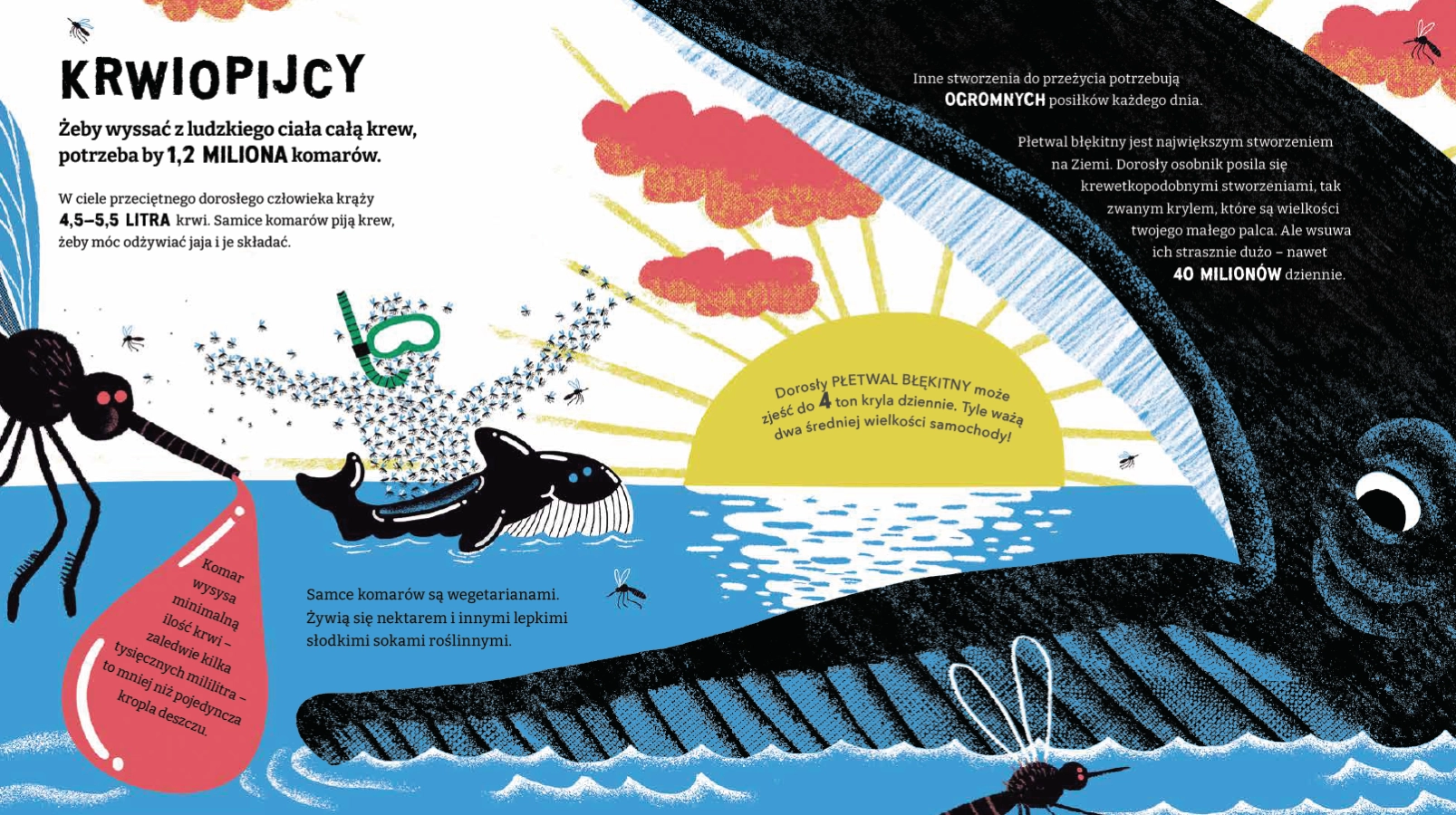 Zabawna i fascynująca książka dla dzieci, które kochają fakty i statystyki. Nauka, technologia, zwierzęta, sport, ludzkie ciało, środowisko – wszystko można opisać za pomocą liczb. Autor pozwala dzieciom spojrzeć na świat z zupełnie nowej perspektywy. Liczby duże i małe uświadomią młodym czytelnikom, jak wygląda otaczająca ich rzeczywistość. Zobacz świat jak nigdy dotąd i zaskocz siebie, swoją rodzinę i przyjaciół zdumiewającymi faktami na wiele gorących i ulubionych tematów. Czy wiesz, że… W ustach jest więcej bakterii niż na desce sedesowej. Pojedyncza błyskawica zawiera wystarczająco dużo energii, żeby upiec 83 000 tostów. W USA dziennie produkuje się więcej ton mleka krowiego niż całe wydobyte złoto. Dzięki odważnym ilustracjom każda kolejna strona to eksplozja wiedzy i koloru. To idealna książka dla dzieci spragnionych wiedzy o świecie. Nie daj się zaskoczyć liczbom w codziennym życiu!