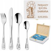 Ten wyjątkowy zestaw sztućców dla dzieci z motywem ZOO w eleganckim drewnianym pudełku łączy w sobie nie tylko uroczy design z wytłoczonymi zwierzątkami na rękojeściach, ale także niezrównaną trwałość dzięki wykonaniu z najwyższej jakości stali nierdzewnej. Personalizowany grawer gratis na sztućcach i pudełku sprawia, że każdy posiłek staje się osobistą przygodą, pełną radości i wspomnień.