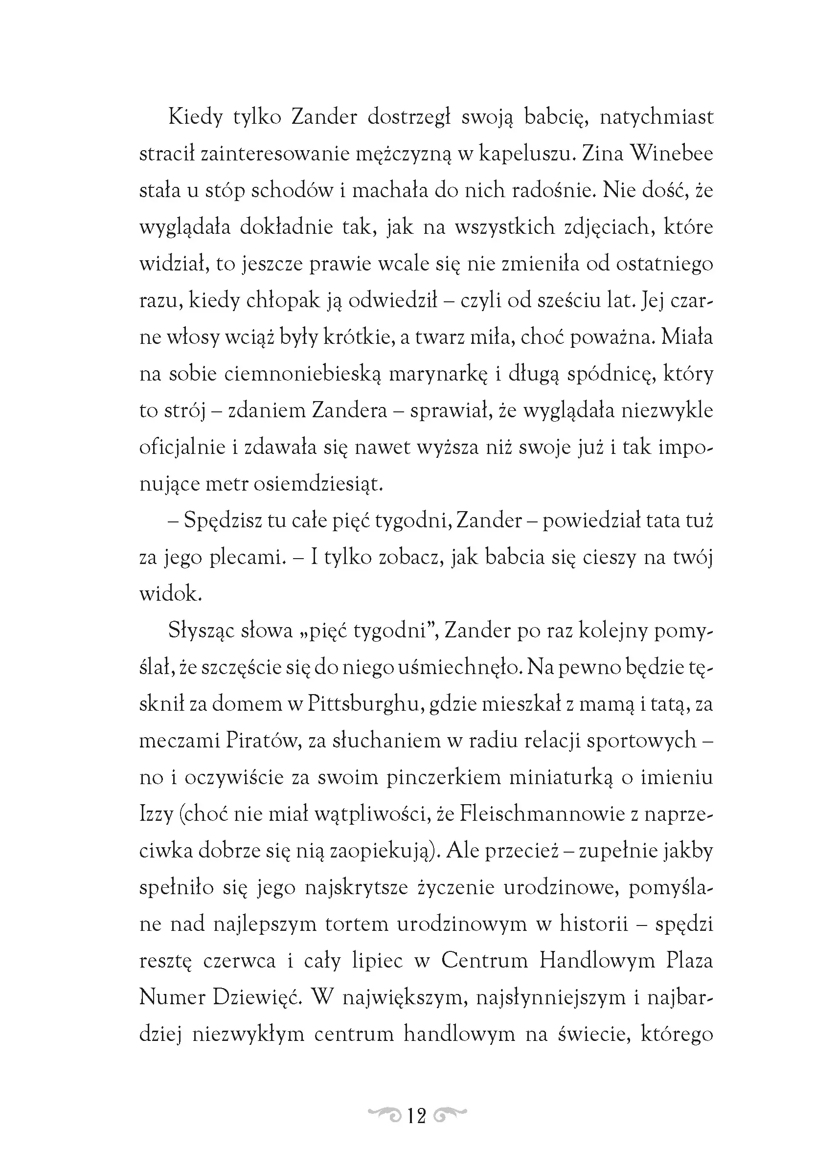 Babcia Zandera Olingi jest właścicielką słynnej Plazy Numer Dziewięć, spektakularnego dziewiętnastopiętrowego domu handlowego o długiej, tajemniczej historii. W Dziewiątce – bo tak mówi się na to miejsce – można znaleźć wszystko: zjawiskowe stoiska ze słodkościami, olśniewające butiki z luksusową modą, jedyny w swoim rodzaju sklep z zabawkami, niecodzienną wystawę staroci, a nawet diabelski młyn. Ale w tym na pozór bezpiecznym, doskonale zorganizowanym miejscu czai się coś bardzo złego, coś, co łaknie strachu i destrukcji. Nic dziwnego, że gościom Dziewiątki nagle zaczynają przytrafiać się nieprzyjemne wypadki. Kiedy Zander natrafia na osobliwe stare inskrypcje zapisane na ścianach budynku, postanawia wraz ze swą nową przyjaciółką Nataszą rozwikłać zagadkę tajemniczych wydarzeń i odnaleźć magiczny artefakt chroniący sklep przed upadkiem. W niezapomnianej scenerii i w towarzystwie niezwykłych postaci poznajemy sekret Plazy Numer Dziewięć i zagłębiamy się w jej mroczne, pełne niebezpieczeństw zakamarki. Tytuł oryginalny: The World-Famous Nine Ilustrator: Kristina Kister Tłumacz: Dominika Ciechanowicz
