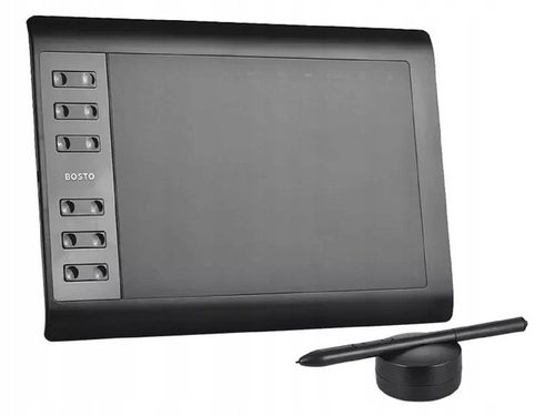 Tablet graficzny BOSTO 1060 Plus został zaprojektowany z dbałością o każdy detal. Wyposażony w wyjątkowe pióro BOSTO W03 z rozdzielczością 0,005 mm i 8192 poziomami nacisku, gwarantuje niezwykle precyzyjne i płynne rysowanie. Obszar roboczy o wymiarach 254x193 mm i 12 przycisków zapewniają komfortowe tworzenie.