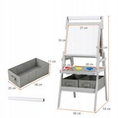Dwustronna konstrukcja sztalugi pozwala na jednoczesną zabawę dwojga dzieci, co doskonale rozwija umiejętności społeczne i współpracy. Przemyślane rozmiary tablicy 37 x 34 cm zapewniają wystarczająco dużo miejsca na twórczą ekspresję, a jednocześnie są idealne dla małych rączek dzieci w wieku 3-6 lat.