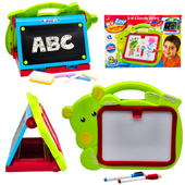 Edukacyjna tablica zachwyci każdego fana prac plastycznych, idealnie nadaje się do rysowania, malowania oraz pisania. Można ją postawić w dowolnym miejscu, na blacie lub podłodze. Tablica posiada 2 użytkowe strony: suchościeralną i kredową, będąc doskonałym pomysłem na zabawę dwójki dzieci jednocześnie.