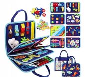 Ta wyjątkowa tablica sensoryczna o 8 stronach aktywności została zaprojektowana z myślą o wszechstronnym rozwoju dziecka. Zawiera elementy takie jak zamki błyskawiczne, sznurowadła, paski, guziki, zegar, kalendarz oraz dopasowywanie kształtów, które w naturalny sposób uczą samodzielności i codziennych czynności. Różnorodność poziomów trudności sprawia, że zabawka rośnie razem z dzieckiem.
