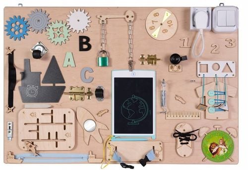 Tablica sensoryczna to świetny pomysł na kreatywną zabawę dla Twojej Pociechy. Nauka przez zabawę to najlepszy sposób na prawidłowy rozwój dzieci. Tablica jest idealnym miejscem na ćwiczenie pierwszych literek oraz cyferek. Odpowiednio wyselekcjonowane elementy ruchome i grające sprawią, że Twoje dziecko rozwinie swoją kreatywność oraz zdolności manualne. Dodatkowo pobudzi to w nim pomysłowość i zachęci do eksplorowania otaczającego go świata. Tablica wykonana w Polsce, bardzo solidna, z materiałów o wysokiej jakości.