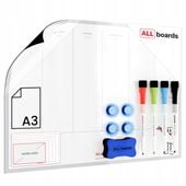 Wszystko to uzupełnia kompletny zestaw akcesoriów w gratisie: gąbka magnetyczna, 4 magnesy i 4 markery, co czyni planer gotowym do natychmiastowego użycia. Łatwość przyczepiania i zdejmowania, połączona z uniwersalnością, sprawia, że to więcej niż planer – to klucz do harmonijnego zarządzania czasem, dostosowany do Twoich unikalnych potrzeb i rytmu życia.