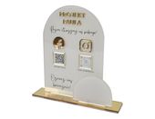 Specjalnie zaprojektowana podstawka, wykonana z przeźroczystej oraz złotej plexi, sprawia, że całość wygląda niezwykle stylowo i schludnie. Wymiary tabliczki wynoszą 16 x 23 cm, a wymiary podstawki to 23 x 5 cm, co czyni ją idealnym dodatkiem do każdego biura, sklepu czy stoiska wystawowego.
