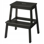 Ten wysokiej jakości taboret kuchenny ze stopniem BEKVÄM od IKEA, w eleganckim czarnym wykończeniu, łączy praktyczność z ponadczasowym designem. Wykonany z litej osiki, zapewnia stabilność i wytrzymałość, ułatwiając bezpieczne sięganie do najwyższych szafek – idealny towarzysz codziennych zadań domowych.