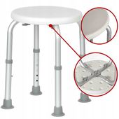 To krzesło prysznicowe okrągłe z regulacją wysokości wyróżnia się ergonomicznym designem i solidną konstrukcją, zapewniającą stabilność i wygodę. Z regulowaną wysokością od 35,5 do 53,5 cm oraz siedziskiem o wymiarach 32x32 cm, idealnie dostosowuje się do indywidualnych potrzeb, umożliwiając bezpieczne i komfortowe korzystanie z prysznica lub wanny bez obaw o poślizgnięcia.