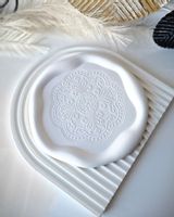 Biała taca dekoracyjna z delikatną ozdobą wspaniale sprawdzi się jako taca na biżuterię podstawka pod Twoje ulubione świece zapachowe, finezyjne figurki czy wazon z kwiatami, eksponując je w całej ich okazałości.