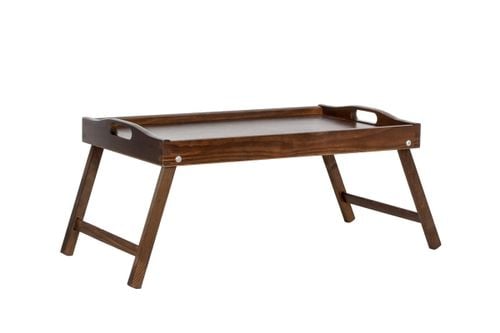 Drewniana taca, stolik śniadaniowy z rozkładanymi nóżkami – ciemnobrązowy.