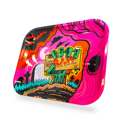 Tacka do skręcania jointów z limitowanej kolekcji RAW to niezastąpiony gadżet dla wszystkich miłośników skręcania i palenia. Ta wyjątkowa tacka została ozdobiona nadrukiem przedstawiającym motyw Zombie, co nadaje jej niepowtarzalny charakter. Wykonana z trwałego metalu, tacka jest nie tylko solidna, ale również stabilna, co zapewnia wygodę i pewność podczas skręcania jointów.