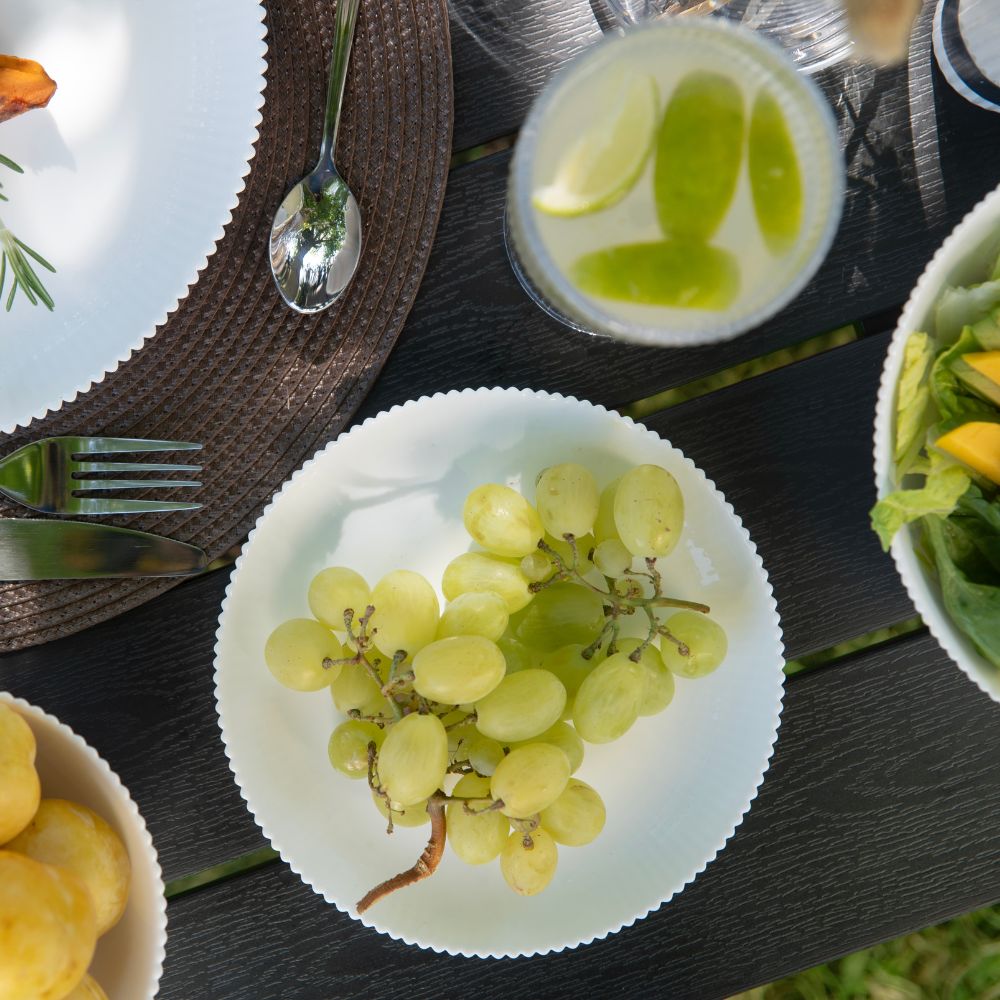 Talerz deserowy AURORA o średnicy 19 cm to elegancki i praktyczny element zastawy stołowej, wykonany z wysokiej jakości szkła białego opalowego. Dzięki swojej ryflowanej strukturze prezentuje się wyjątkowo stylowo i nowocześnie. Idealnie sprawdzi się do serwowania ciast, deserów czy owoców. Klasyczna biel sprawia, że pasuje do każdej aranżacji stołu. Talerz jest bezpieczny do mycia w zmywarce oraz używania w kuchence mikrofalowej, co zapewnia wygodę w codziennym użytkowaniu.