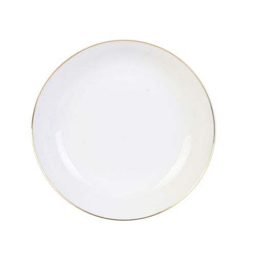 Głęboki talerz Pearl Gold to klasyczny, prosty design, który będzie doskonały na każdą okazję, na co dzień i od święta. Idealny na zupy czy makarony. Talerz wykonany jest z porcelany w kolorze białym, a na brzegu posiada delikatny, złoty akcent.