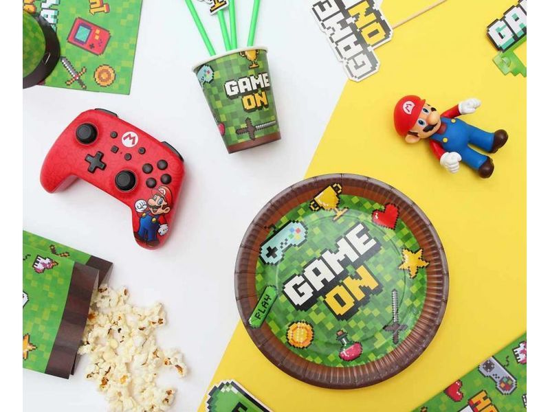 Talerzyki papierowe dla prawdziwego gracza komputerowego (gamera) z motywem Game On. W opakowaniu znajduje się 6 sztuk talerzyków o średnicy 18 cm. Idealnie nadają się na przyjęcia w domowym zaciszu, aby dodać akcent elegancji. Dzięki tak pięknym talerzykom możesz uszczęśliwić Swoje dziecko jak i zagorzałego przyjaciela i sprawić mu niesamowitą niespodziankę.