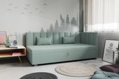 Tapczan wyposażony jest w wygodne oparcie oraz poduszki, które wraz z przestronną powierzchnią spania zapewniają maksymalny komfort. Dodatkowo, automaty wspomagające ułatwiają otwieranie i zamykanie pojemnika na pościel.