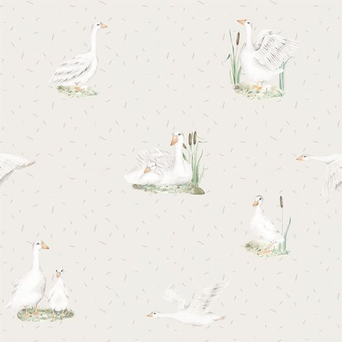 Jeszcze więcej uroczych gąsek? Tapeta Gąski to drobny, delikatny "gęsiastyczny" wzór na jasnobeżowym tle.