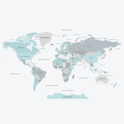 Kolorowa mapa świata ze szczegółowymi konturami oraz nazwami państw nie tylko zachwyca estetyką, ale również pobudza ciekawość oraz przypomina o licznych miejscach czekających na odkrycie. Tło o neutralnym odcieniu wraz z wyrazistymi akcentami barwnymi sprawia, że tapeta idealnie komponuje się z różnymi stylami wnętrz - od nowoczesnych po klasyczne. Możesz śmiało udekorować nią: