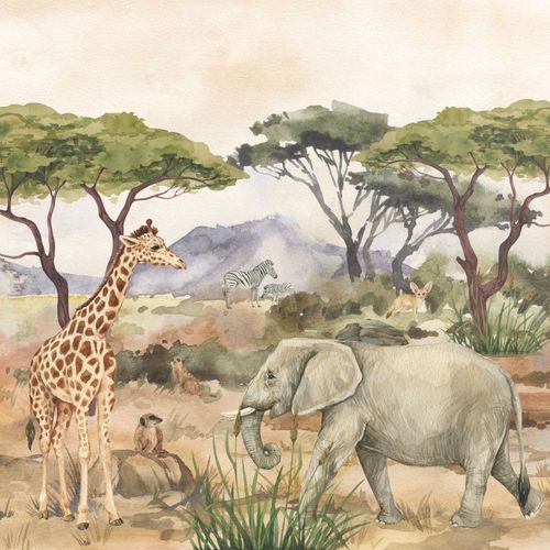 Tapeta Safari W39 250 cm Płótno to niezwykła propozycja dla wszystkich miłośników przyrody i dekoracji wnętrz! Oto idealny sposób, by wprowadzić do swojego domu atmosferę dzikiej afrykańskiej sawanny. Zanurz się w pięknie akwarelowych wzorów ze zwierzętami, które dodają niepowtarzalnego charakteru każdemu pomieszczeniu.