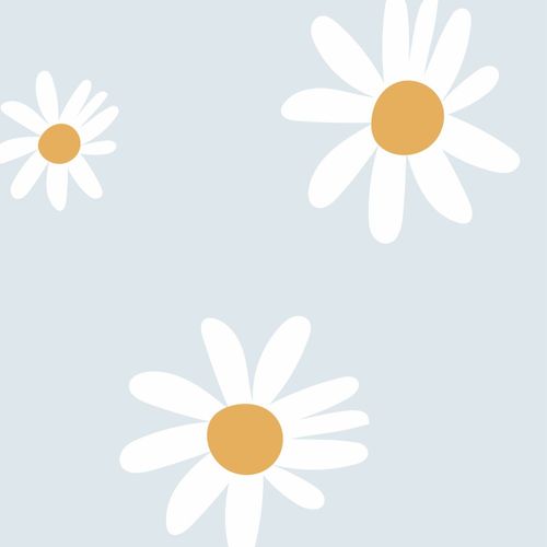 Tapeta winylowa na podkładzie flizelinowym z motywem stokrotek na błękitnym tle.