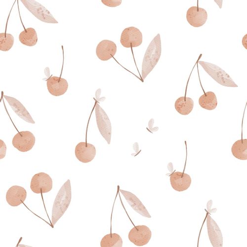 Tapeta z wisienkami jest dostępna w dwóch wariantach kolorystycznych, aby dopasować się do różnorodnych gustów i stylów wystroju. Oprócz wersji z białym tłem, oferujemy również tapetę z beżowymi wisienkami na beżowym tle, które dodają przestrzeni lekkości i świeżości.