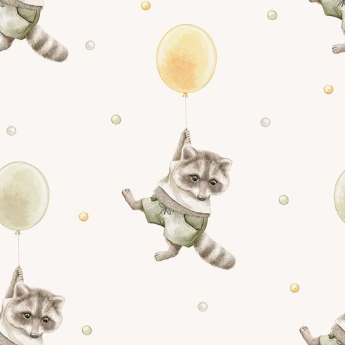 Subtelna kolorystyka tapety, z dominacją stonowanych tonów, przełamana jest akcentem żółtego balonika, który wnosi do pomieszczenia nutę beztroski i dziecięcej magii. Uporządkowany wzór o regularnym rozmieszczeniu sprawia, że pomieszczenie nabiera harmonijnego wyglądu, a każdy kto znajdzie się w jego wnętrzu, od razu poczuje się bardziej radośnie.