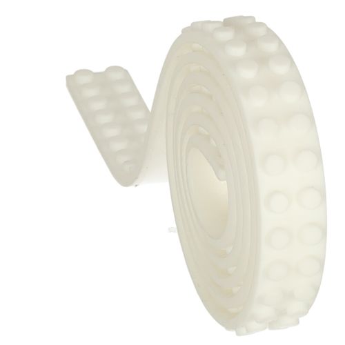 Idealna dla każdego miłośnika klocków, taśma o wymiarach 1,5 cm x 90 cm może stać się ażurą do niezwykłych budowli, które z pewnością zachwycą. Wyjątkowość tego produktu polega na tym, że umożliwia też tworzenie konstrukcji odwróconych – wystarczy przyczepić taśmę pod stół czy inną gładką powierzchnię. Dzięki temu wyobraźnia dzieci nie zna granic!