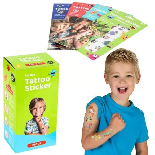 Tatuaże Tymczasowe dla Dzieci - Wesołe Naklejki na Skórę - + 50 tatuaży Spraw radość swojemu dziecku dzięki naszym fantastycznym tatuażom tymczasowym! Ten zestaw zawiera mnóstwo kolorowych i zabawnych naklejek na skórę, które są bezpieczne i łatwe w aplikacji. Idealne na przyjęcia urodzinowe, zabawy karnawałowe, nagrody i po prostu dla czystej frajdy! Kluczowe cechy produktu: Mnóstwo wzorów: Zestaw zawiera różnorodne wzory, które z pewnością przypadną do gustu dzieciom. Znajdują się tu [wymień przykładowe motywy widoczne na zdjęciu, np. zwierzątka, kosmos, muzyka, fantastyczne stwory]. Bezpieczne dla skóry: Wykonane z bezpiecznych i nietoksycznych materiałów, które są delikatne dla skóry dziecka. Łatwa aplikacja: Wystarczy przyłożyć naklejkę do skóry, zwilżyć ją wodą i odczekać chwilę, aby cieszyć się kolorowym tatuażem. Trwałe i wodoodporne: Tatuaże utrzymują się na skórze do 2-3 dni i są odporne na lekkie zamoczenie. Łatwe do usunięcia: Aby usunąć tatuaż, wystarczy przetrzeć go oliwką dla dzieci lub ciepłą wodą z mydłem. Idealne na różne okazje: Świetnie sprawdzą się jako upominki na przyjęciach, nagrody w konkursach, element charakteryzacji lub po prostu jako fajna zabawa na co dzień. Dla chłopców i dziewczynek: Wzory są uniwersalne i atrakcyjne dla dzieci obu płci. Wielkość: 23x11 cm Podaruj swojemu dziecku mnóstwo kolorowej zabawy bez zobowiązań dzięki naszym wesołym tatuażom tymczasowym! Niech wyobraźnia rozkwitnie na ich skórze!