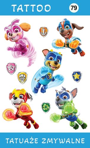 Tatuaże zmywalne Psi Patrol - idealne dla najmłodszych! Odkryj niezwykłe tatuaże tymczasowe, które zachwycą każde dziecko! Wysoka jakość wykonania zapewnia, że kolory są intensywne i nie tracą na intensywności po nałożeniu na skórę. To HIT SEZONU, którego Twoje dzieci nie będą chciały zdjąć!