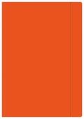 Teczka posiada gumkę zamykającą. Wykonana ze sztywnego papieru koloru fluo pomarańczowego.
