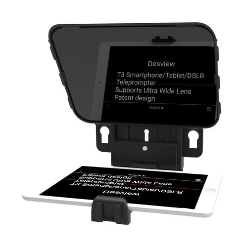 Aplikację umożliwiającą zarządzanie tekstem, który będziesz czytać z telepromptera Desview T3 pobierzesz bezpłatnie ze sklepu Google Play (Android) lub App Store (iOS). Z jej pomocą dostosujesz takie parametry jak szybkość przewijania, kolor tła lub wielkość liter. Aplikacja umożliwia zapisywanie wielu różnych dokumentów z przygotowanym tekstem, o nieograniczonej ilości słów. Dzięki temu możesz zaplanować kilka odcinków swojego programu i nagrać je ciągiem, bez konieczności podmieniania scenariuszy. Podczas pracy z aplikacją na ekranie wyświetli się również cienka pozioma linia. Dzięki niej czytanie z telepromptera będzie wyglądało naturalnie, a Twoje oczy będą zawsze skierowane w centralną część obiektywu.