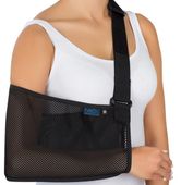 Orteza temblak lekarski, zapewnia unieruchomienie oraz podtrzymanie kończyny górnej. Wykonany z siatkowej tkaniny, która zapewnia cyrkulacją powietrza. Kształt wyrobu oraz podział rozmiarowy umożliwiają idealne dopasowanie do ciała pacjenta. Wyrób posiada funkcję obustronnego noszenia, co pozwala na stosowanie go zarówno na prawe jak i lewe ramię. Układ podtrzymywania kończyny jest mocowany za pomocą regulowanej taśmy naramiennej, umożliwiającej precyzyjne ustawienie kończyny we właściwej wysokości. Szeroki pas podtrzymujący zapewnia równomierne rozłożenie ciężaru na całej długości pleców. Produkt bardzo wysokiej jakości wyprodukowany w Polsce.