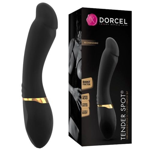 Luksusowy wibrator wykonany z silikonu medycznego. Tender Spot jest niezwykle elastyczny, dzięki czemu z łatwością ugina się pod naciskiem. Jego zagięta główka z niesamowitą precyzją wyszukuje najczulszy punkt G kobiety. Urządzenie przeznaczone jest do stymulacji wnętrza pochwy, punktu G, łechtaczki oraz innych wrażliwych obszarów ciała. Wibrator posiada aż 7 trybów wibracji.
