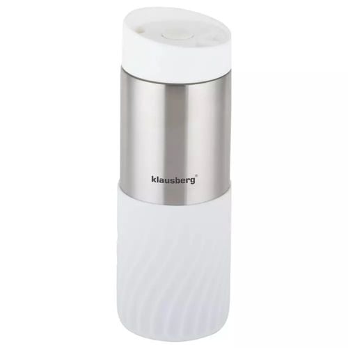 Kubek - termos nowej generacji o pojemności 400 ml firmy KLAUSBERG wykonany ze stali nierdzewnej z izolacją próżniową DOUBLE WALL. Kubek posiada odkręcana pokrywkę z wylewką Click-clack. Przycisk w pozycji OFF zamyka szczelnie kubek i działa on jak termos. Gdy przycisk jest w pozycji ON można z niego korzystać jak ze zwykłego kubka. Z dolnej części kubek wykończony opaską silikonową z falistym wzorem zapewniającą pewny chwyt. Izolacja próżniowa sprawia że kubek długo utrzymuje temperaturę wewnątrz, podobnie jak termos. Podstawa antypoślizgowa. Kubek termiczny Klausberg prezentuje się jako esencja nowoczesnego designu i funkcjonalności. Jego biały kolor w połączeniu ze srebrnymi elementami tworzy doskonałą harmonię, dodając mu nie tylko elegancji, ale też charakteru.