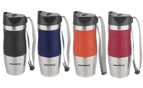 Kubek - termos o pojemności 380 ml wykonany ze stali nierdzewnej z izolacją próżniową THERMO POWER firmy KLAUSBERG. Kubek posiada odkręcana pokrywkę z wylewką Quick Stop. Przycisk w pozycji OFF zamyka szczelnie kubek i działa on jak termos. Gdy przycisk jest w pozycji ON można z niego korzystać jak ze zwykłego kubka. Specjalnie ukształtowany ustnik ułatwia picie minimalizując ryzyko rozlania napoju. Izolacja próżniowa sprawia że kubek długo utrzymuje temperaturę wewnątrz, podobnie jak termos. Silikonowy uchwyt i specjalnie skonstruowana przykrywka pozwalają korzystać z kubka podczas podróży. Silkonowa opaska zapewnia pewny chwyt i uniemożliwia wyślizgnięcie się nawet z mokrej dłoni. Dodatkowo przy pokrywie pasek z regulowaną długością. Można za pomoca niego przymocować kubek do plecaka, paska lub po prostu przenosić kubek.