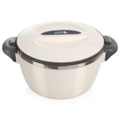 Wykonana ze stali nierdzewnej - Termomisa wewnątrz wykonana jest ze stali nierdzewnej. Zewnętrzna obudowa wykonana jest z tworzywa w kremowym, perłowym kolorze. Pokrywka w kolorze białym, a uchwyty w szarym kolorze.