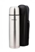 Termos stalowy z pokrowcem. Wykonany ze stali nierdzewnej. Termos posiada podwójne ścianki i jest odporny na wstrząsy. Posiada przycisk z funkcją nalewania. W zestawie pokrowiec w kolorze czarnym. Aby zawartość termosu utrzymywała ciepło lub zimno należy wstepnie podgrzać lub schłodzić termos przez 2-3 minuty, aby wymagana temperatura zawartości utrzymywała się na dłuższy czas. Po napełnieniu termosu nalezy zamknąć szczelnie pokrywę.