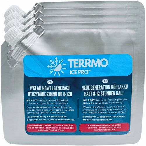 Innowacyjna technologia TERRMO Ice Pro™ gwarantuje doskonałe i długotrwałe chłodzenie Twoich produktów spożywczych, napojów oraz leków. Specjalna formuła zawarta w wkładach zamienia się w gęsty żel, który po zamrożeniu tworzy twardy, wydajny blok lodu.