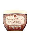 Tesori d'Oriente Byzantium to luksusowy krem do ciała inspirowany orientem, który zapewnia głębokie nawilżenie oraz zmysłowy, długotrwały zapach. Unikalna formuła łączy w sobie właściwości odżywcze z aromatycznym doznaniem – czarna róża i labdanum tworzą elegancką kompozycję, która otula ciało i koi zmysły.