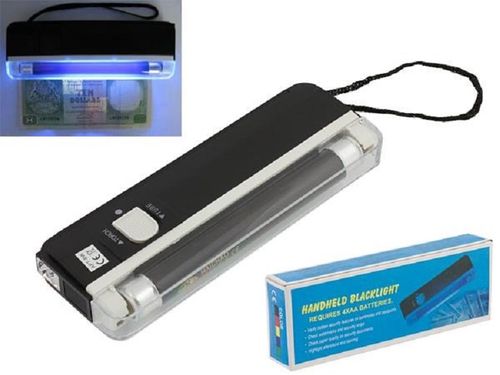 Mini lampa ultrafioletowa UV - idealna do sprawdzania banknotów i dokumentów posiadających specjalne znaki widzialne w świetle UV np. wszystkich walut, kart kredytowych, paszportów i innych dokumentów. Wbudowana latarka pozwala sprawdzać również znak wodny i nitkę zabezpieczającą.
