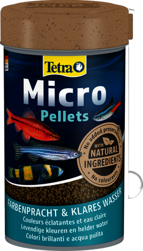 Tetra Micro Granules to karma kompletna dla wszystkich ryb ozdobnych o małym pyszczku. Granulki mają szczególnie małą średnicę 0,3–1 mm, zawierają wysokiej jakości składniki odżywcze i wyróżniają się zbilansowaną kompozycją składników roślinnych i zwierzęcych. Czerwony pokarm zawiera karotenoidy zapewniające intensywny kolor, z kolei zielony pokarm ze składnikami ziołowymi przyczynia się do poprawy zdrowia i witalności. Małe granulki Tetra Micro Granules są idealne dla małych ryb, ponieważ szybko miękną w wodzie, dzięki czemu są łatwe do jedzenia. Podsumowując, Tetra Micro Granules to idealna karma podstawowa dla wszystkich małych ryb ozdobnych, a także młodych, rosnących pielęgnic i ryb morskich.