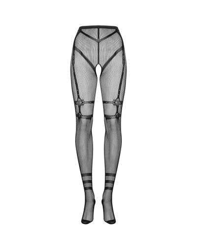 Rajstopy S123 to pikantny akcent, który natychmiast podgrzeje atmosferę. Czarna siateczka otula nogi zmysłową lekkością, a nadruk przypominający pasy oplatające uda dodaje całości charakteru. Otwarty krok wprowadza element zaskoczenia, idealny na wyjątkowy wieczór we dwoje. Elastyczny materiał zapewnia idealne dopasowanie do sylwetki, eksponując kobiece kształty w najpiękniejszy sposób.