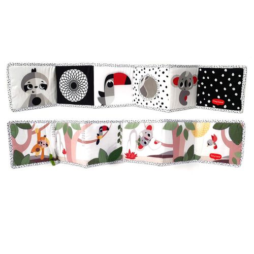 Książeczka jest idealna na czas spędzany na brzuszku – dzięki swoim kolorom i elementom sensorycznym zachęca dziecko do dłuższego przebywania w tej pozycji, co pomaga wzmacniać mięśnie szyi, karku i ramion. Jej kompaktowy rozmiar i łatwość złożenia sprawiają, że jest to idealna zabawka na podróż, którą zawsze można zabrać ze sobą, by zapewnić dziecku aktywizującą zabawę w każdym miejscu.