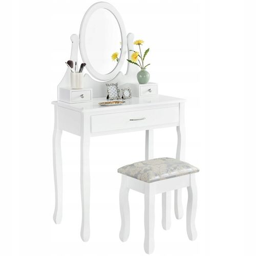 Ta wyjątkowa toaletka kosmetyczna z lustrem i taboretem wyróżnia się ręcznym wykonaniem, które gwarantuje precyzję i dbałość o każdy detal. Zaokrąglone nogi oraz unikalne zdobienia tworzą elegancki, wiktoriański styl stołka, a trzy obszerne szuflady pozwalają na uporządkowane przechowywanie nawet największej kolekcji kosmetyków, zapewniając codzienną wygodę na najwyższym poziomie.