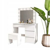 Wszystko uzupełnia praktyczność i łatwość użycia. Z 4 pojemnymi szufladami na akcesoria, eleganckim taboretem z miękkim obiciem oraz długim przewodem zasilającym z włącznikiem, ta toaletka jest nie tylko funkcjonalna, ale także energooszczędna dzięki LED-om. To więcej niż mebel – to klucz do harmonijnej przestrzeni osobistej, dostosowany do Twoich codziennych potrzeb.