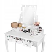 Wszystko to uzupełnia praktyczność i łatwość montażu. Zaokrąglone nogi i unikalne zdobienia nadają meblowi ponadczasowy urok, idealnie pasujący do każdego wnętrza. To więcej niż toaletka – to klucz do Twojego osobistego azylu piękna, dostosowany do unikalnych potrzeb i codziennych pragnień.