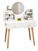 Wszystko to uzupełnia praktyczność i łatwość montażu. Wyposażona w dwie szuflady i otwarty schowek, toaletka oferuje inteligentne rozwiązania do przechowywania kosmetyków i biżuterii. Prosty montaż z dołączoną instrukcją sprawia, że szybko staje się integralną częścią Twojego otoczenia. To więcej niż mebel - to klucz do uporządkowanego i stylowego świata codziennych przyjemności, dostosowany do Twoich unikalnych potrzeb.