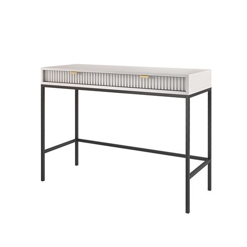 Nowoczesna toaletka z kolekcji Nova została wykonana z najwyższej jakości płyty laminowanej, która na obrzeżach została zabezpieczona okleiną ABS. Stylowa konsola Nova posiada dwie szuflady, na których front jest frezowany. Z powiedzeniem zmieszczą się w nich niezbędne drobiazgi. Prosta forma, a zarazem oryginalna sprawia, że toaletka wkomponuje się w wiele aranżacji, nadając wnętrzu charakteru. Produkt świetnie odnajdzie się w biurze jako biurko, sypialni jako toaletka lub przedpokoju jako konsola.