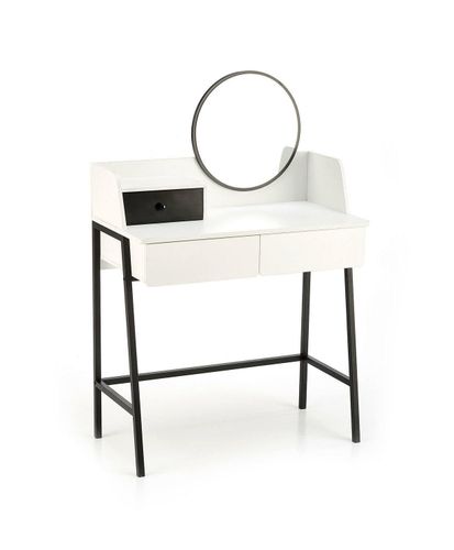 Toaletka Sonia została wykonana z płyty meblowej okleinowanej melaminą, co gwarantuje trwałość i estetyczny wygląd mebla. Stal malowana proszkowo stanowi stabilną podstawę, która w odcieniu czarnym dodaje kontrastu i charakteru całej kompozycji. Ciekawym aspektem jest zrównoważenie kolorów - biały blat łączy się harmonijnie z czarną podstawą, tworząc elegancką kombinację. Co więcej, Sonia wyposażona została w duże lustro o średnicy 35 cm nie tylko ułatwia dokładne wykończenie makijażu, ale także dodaje wnętrzu przestronności i elegancji. Kolejną zaletą toaletki są trzy wygodne szuflady, które oferują doskonałą przestrzeń do przechowywania różnorodnych kosmetyków, akcesoriów i przedmiotów codziennego użytku.